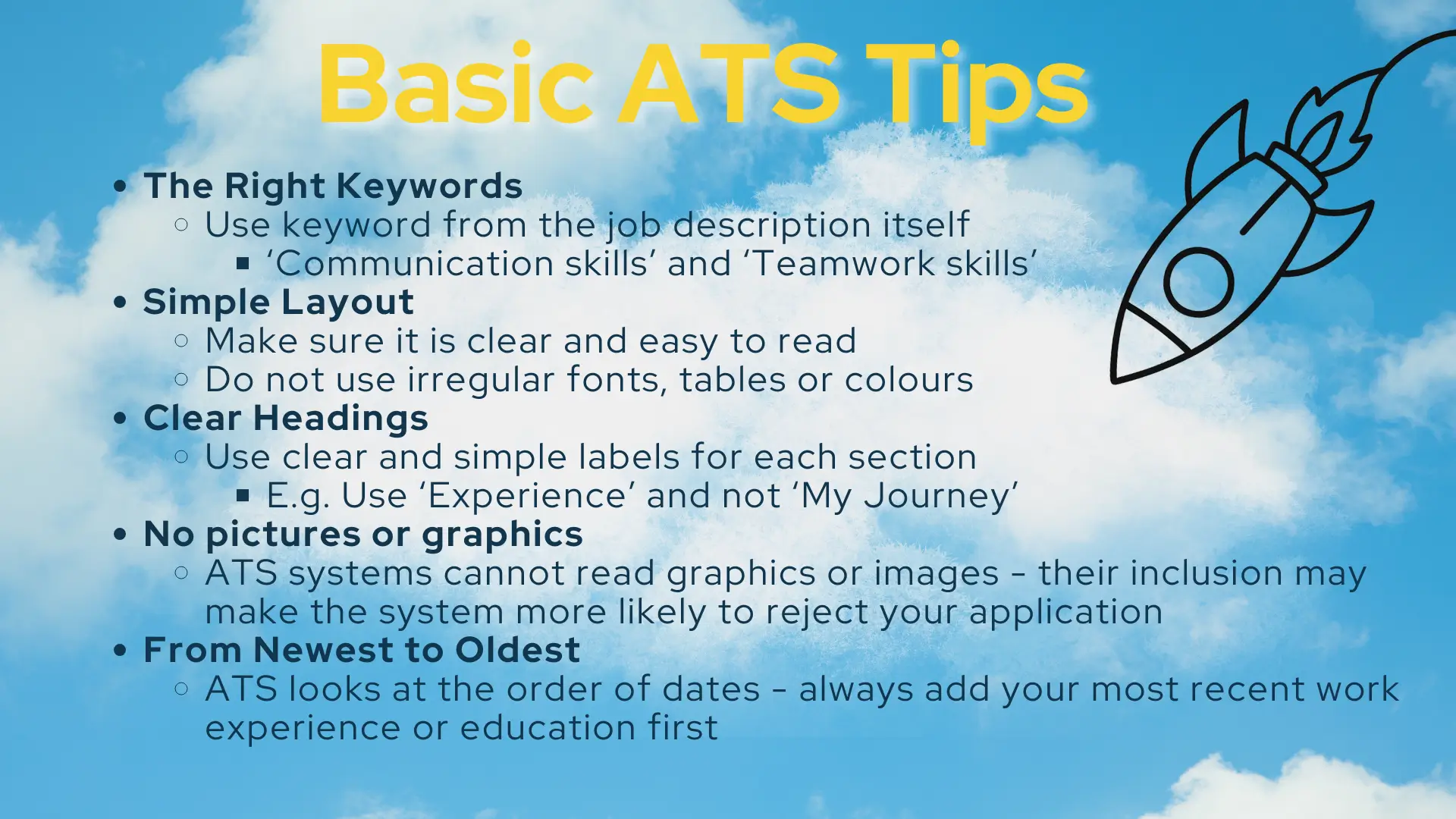 At present, many employers use Applicant Tracking Systems (ATS) to filter CVs before a human even sees them. This means your CV needs to be clear, well-structured, and include the right keywords to make it through the system.